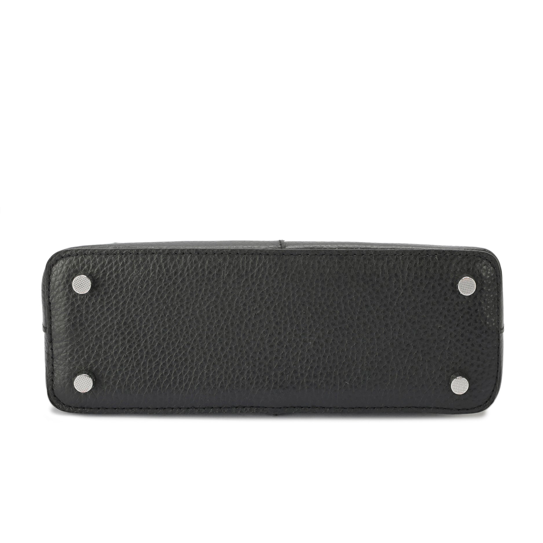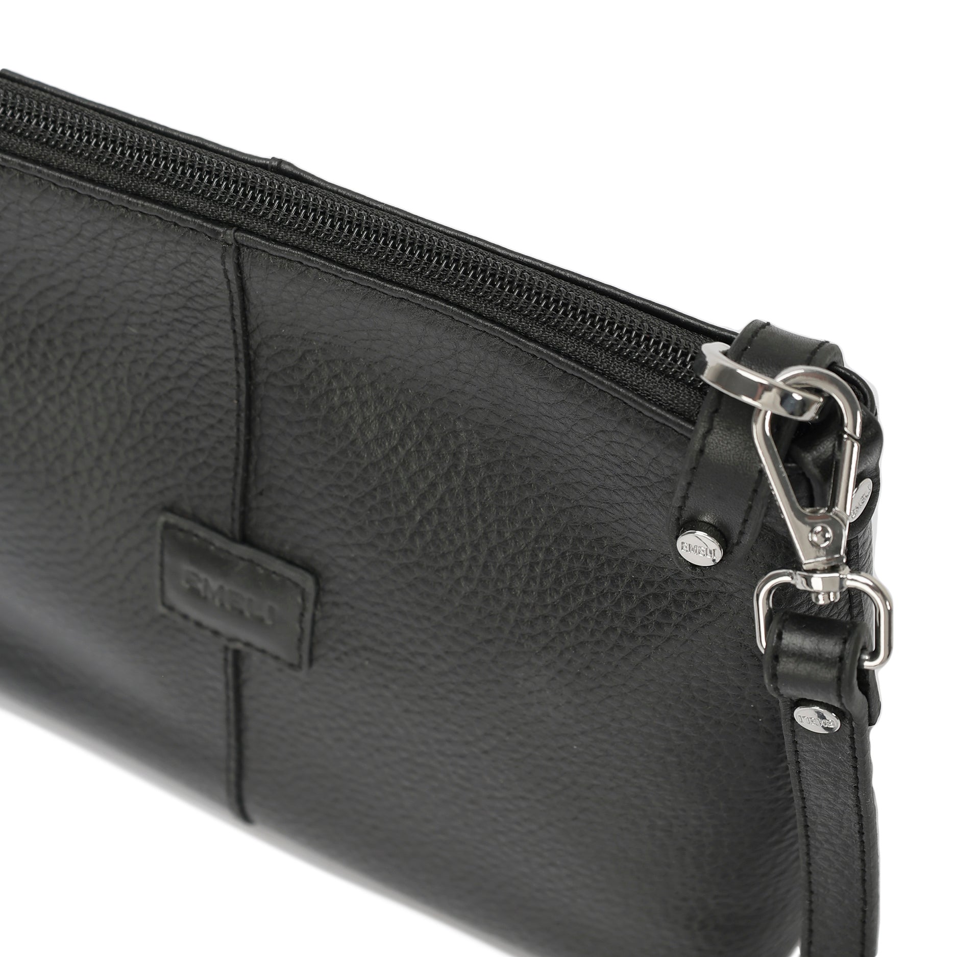 genuine leather, it features a structured square silhouette and a sleek zip-top closure, combining practicality with refined Emeli craftsmanship.