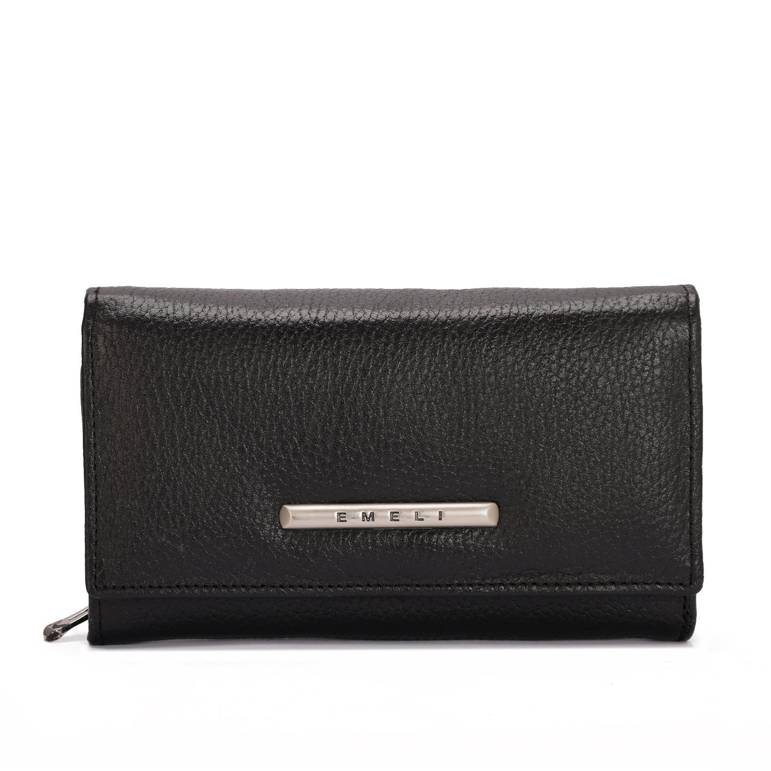 The Emeli Leather Long Wallet is a refined everyday essential designed for women who value elegance and organization. Crafted from genuine pebbled leather, this sleek long wallet offers a spacious interior while maintaining a slim, sophisticated silhouette. Finished with EMELI’s signature metallic logo hardware, it’s the perfect balance between practicality and timeless style.