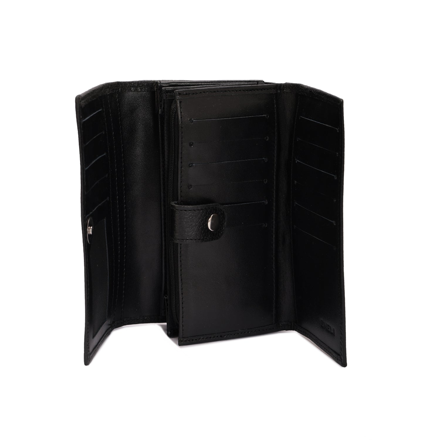 • Multiple card slots and spacious compartments for cash and receipts