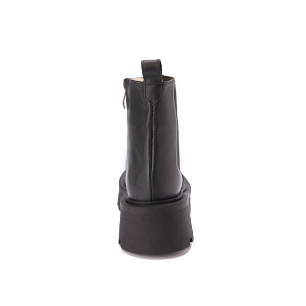 These ankle boots combine bold design with everyday functionality. Crafted from smooth genuine leather, they feature chunky soles and side zippers for effortless wear. A modern silhouette that balances edge, comfort, and timeless appeal.