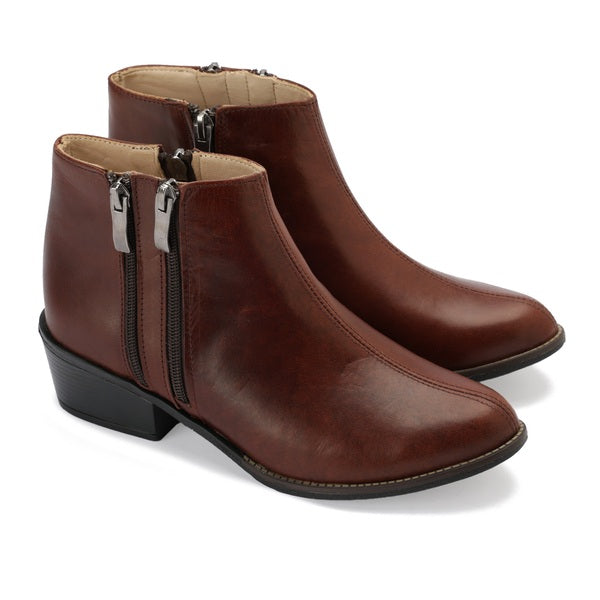 Our leather ankle boots with double zippers combine functionality and style, crafted from 100% top-grain leather for a sleek and durable finish. The double zipper design adds a modern edge while ensuring easy wear. These boots are perfect for transitioning between seasons, offering both comfort and versatility for any occasion.